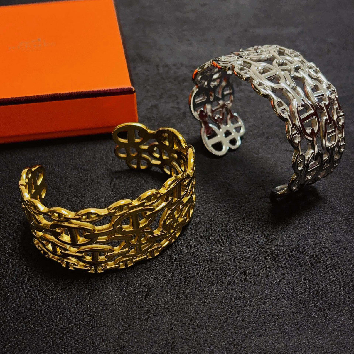 [Solara Jewelry ]H New Wide Band Double Interlocking Hoop Bracelet
